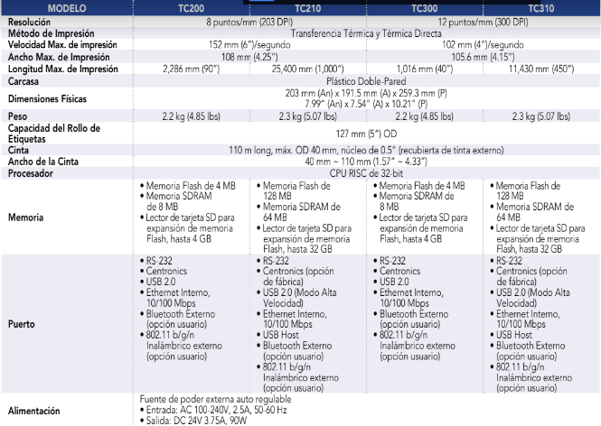 – *Estándar para TC200 y TC300,